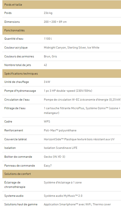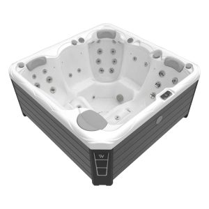 Notre spa Wellis Budapest Life offre suffisamment d’espace pour 5 personnes, tout en s’intégrant confortablement dans un petit espace. Il dispose de deux chaises longues avec un mySEAT™ entre elles. De plus, nous avons ajouté un design myJETS™ à l’une de ses places assises, éliminant ainsi les douleurs au cou et aux épaules.